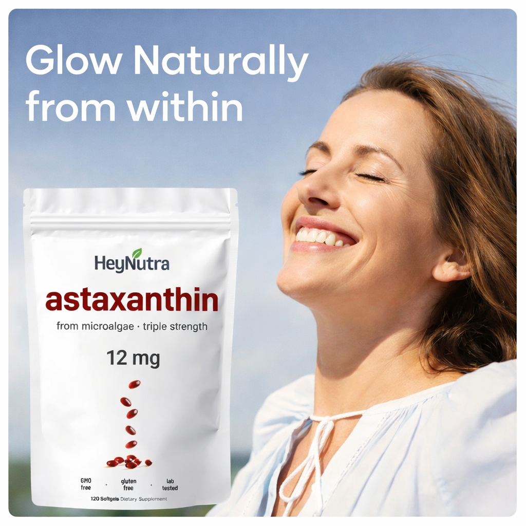 As we age, oxidative stress increases, which can lead to dull skin, joint stiffness, tired eyes, and lower energy levels.HeyNutra Astaxanthin helps support your body’s natural defenses from the inside out. Each serving delivers a clinical-strength 12 mg dose sourced from microalgae — the purest and most researched form.